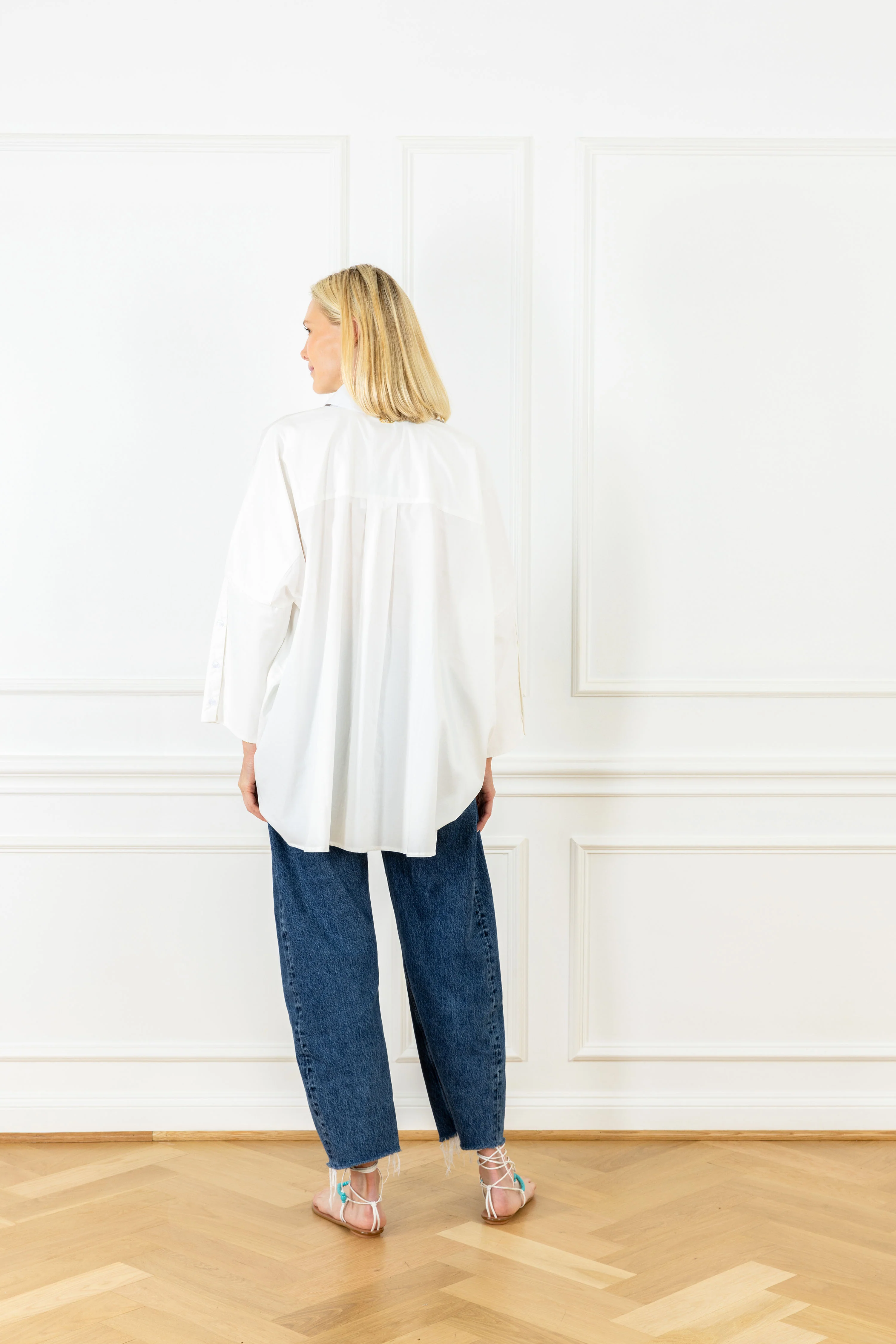the slouchy fit you know and love, designed for an oversized and elevated look. this shirt features a classic look with a cotton fabrication in solid white.